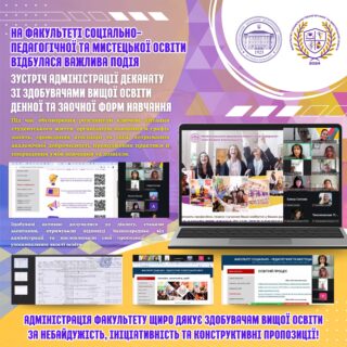 📅‼️ 2 жовтня на факультеті соціально-педагогічної та мистецької освіти пройшла важлива подія — зустріч адміністрації деканату зі здобувачами вищої освіти денної та заочної форм навчання. Захід відбувся онлайн на платформі Zoom, що дозволило долучитися широкому колу студентів.
