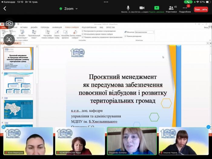 4. Проєктний менеджмент як передумова забезпечення повоєнної відбудови і розвитку територіальних громад. Доповідач: доцент кафедри управління та адміністрування Осипенко Світлана Олександрівна.