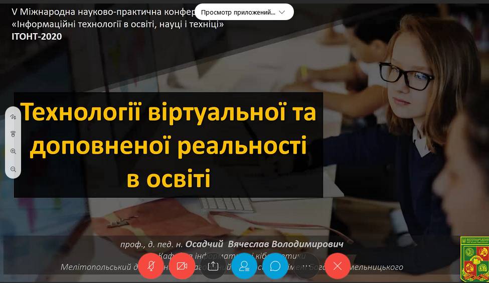 На пленарному засіданні виступив керівник НДР, завідувач кафедри інформатики і кібернетики професор Осадчий В.В. з доповіддю «Технології віртуальної та доповненої реальності в освіті».
