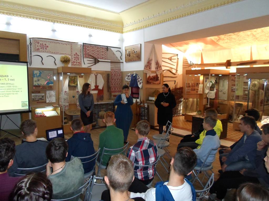 Запрошені на краєзнавчу годину учні дев’ятих класів Мелітопольської спеціалізованої школи І-ІІІ ступенів № 25 дізналися про історію нових назв старих вулиць нашого міста: вулиця Козацька, вулиця Івана Богуна, вулиця Пилипа Орлика. Кожна з трьох перейменованих в рамках виконання законів України про декомунізацію вулиць має свою історію, яка започаткована ще в минулому столітті. Як саме розвивалися історія трьох означе их вулиць учні дізналися з цікавої розповіді наукового співробітника музею Тетяни Шевченко-Чепелєвої. Так, вулиця Козацька, отримала назву на честь козаків, які в давнину виборювали незалежність України. Вулиця Івана Богуна названа на честь українського військового і державного діяча, козацького полководця XVII століття Івана Богуна, одного з сподвижників Богдана Хмельницького. Невипадково вулиця знаходиться неподалік памятника славнозвісному гетьману. Вулиця Пилипа Орлика колись мала назву Степова, а відтепер носить ім’я першої в світі Конституції. «Вулиці нашого міста мають свою давню історію, яку ми, мелітопольці, маємо знати і шанувати», — резюмувала Тетяна Тарасівна.