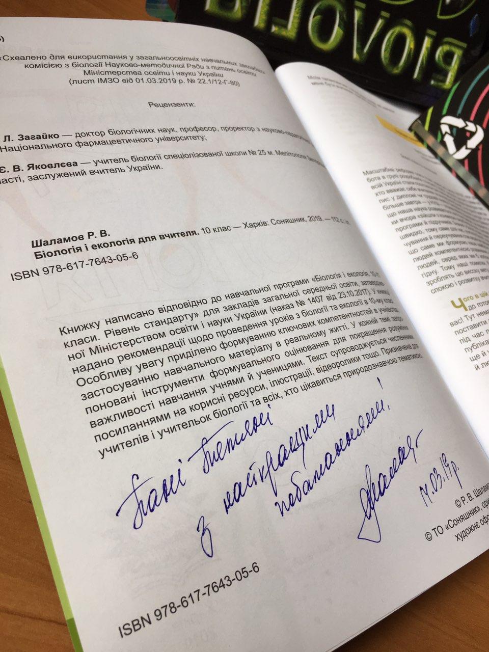 Новий підручник з біології, автором якого є Шаламов Р.В., має яскравий дизайн, включає актуальну інформацію, доступний виклад навчального матеріалу, цікаві завдання, дотепні проекти, результати новітніх досліджень, численні графіки і таблиці, цікаві запитання після параграфів.