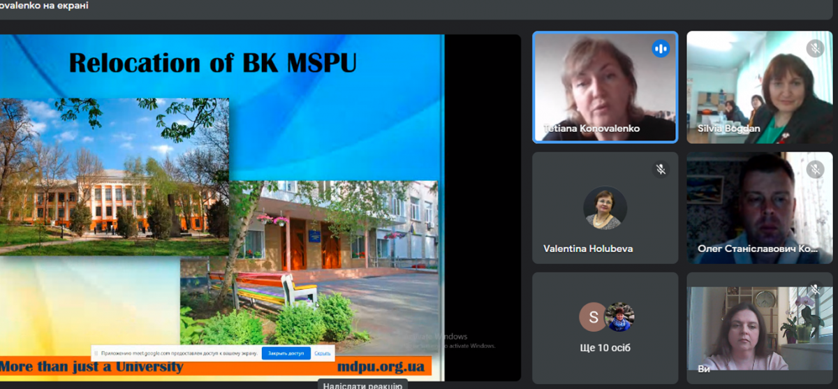 Вона поділилася досвідом організації освітнього процесу в МДПУ імені Богдана Хмельницького в критичних умовах; результатами опитування, проведеного серед студентів; конструктивними рішеннями на виклики війни заради невпинності освітнього процесу.