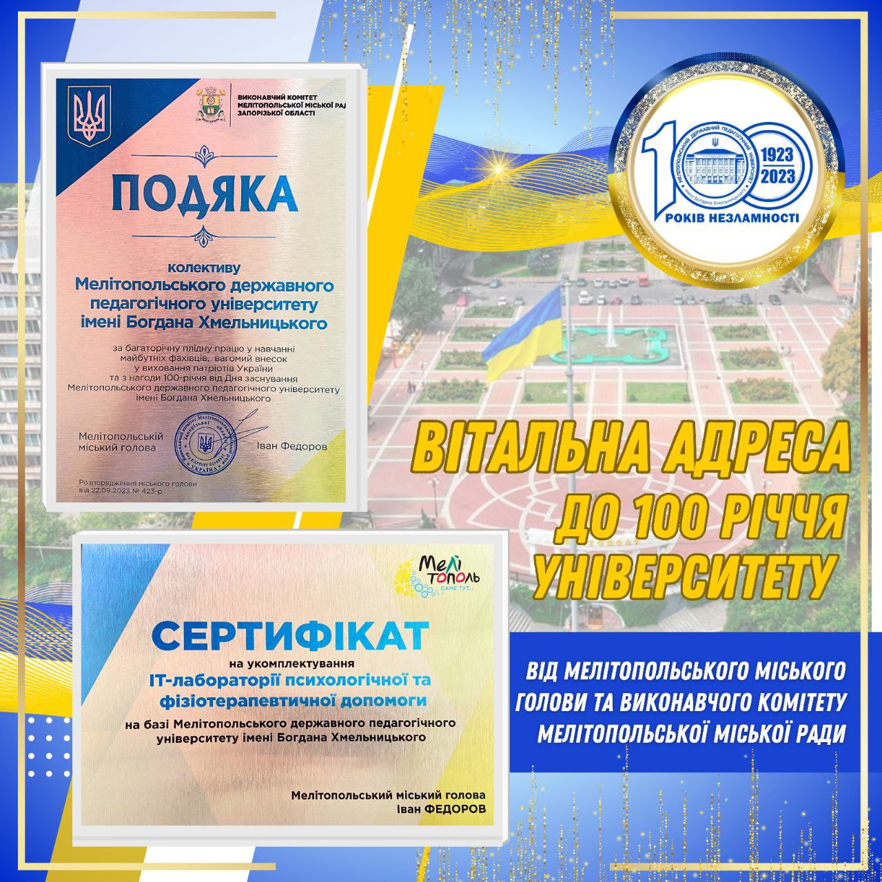 ВІТАЛЬНА АДРЕСА МЕЛІТОПОЛЬСЬКОГО МІСЬКОГО ГОЛОВИ ІВАНА ФЕДОРОВА З НАГОДИ ЮВІЛЕЮ УНІВЕРСИТЕТУ!