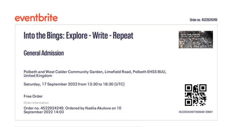 У межах стажування Надія Акулова взяла участь у воркшопі “Into the Bings: Explore – Write – Repeat” (17.09.2022, West Calder, UK).