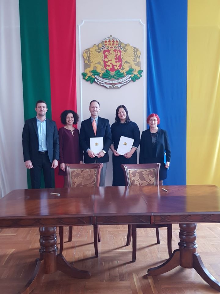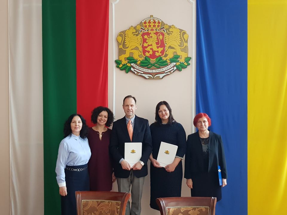 Вітаємо колектив Центру болгаристики з перемогою!19.12.2019 у Посольстві Республіки Болгарії в Україні через Надзвичайного та Повноважного Посла Костадіна Коджабашева, з однієї сторони, було підписано Угоду про надання фінансової допомоги для реалізації проекту «Обладнання багатофункціонального центру для інтерактивної віртуальної академічної мобільності». Мелітопольський державний педагогічний університет імені Богдана Хмельницького під час підписання Угоди, з другої сторони, представляла проректор з наукової роботи, доктор педагогічних наук, професор Людмила Москальова.