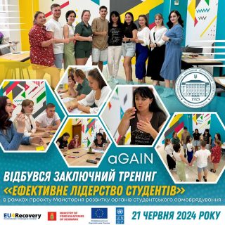 21 червня 2024 року у змішаному форматі відбувся фінальний тренінг на тему «Ефективне лідерство студентів».