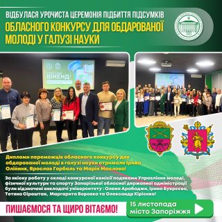 🏛️🎉15 листопада 2024 року відбулася урочиста церемонія підбиття підсумків обласного конкурсу для обдарованої молоді у галузі науки у Запорізькому обласному центрі молоді.
