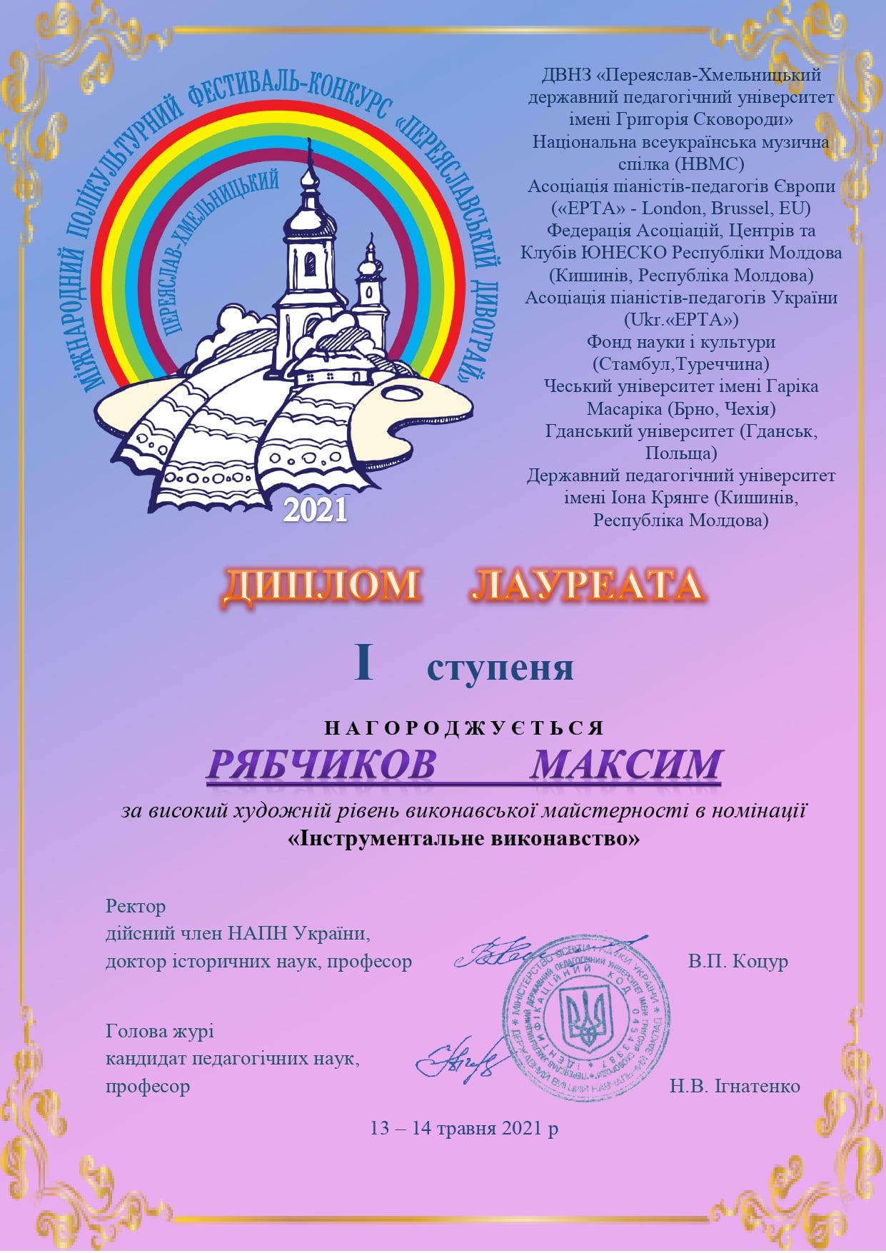 Диплом лауреата І ступеня – студент Навчально-наукового інституту соціально-педагогічної та мистецької освіти Рябчиков Максим, керівник – завідувач кафедри інструментального виконавства та музичного мистецтва естради Марина Білецька.