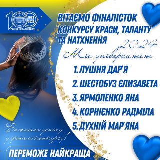 ВІТАЄМО УЧАСНИЦЬ КОНКУРСУ “МІС УНІВЕРСИТЕТ”!