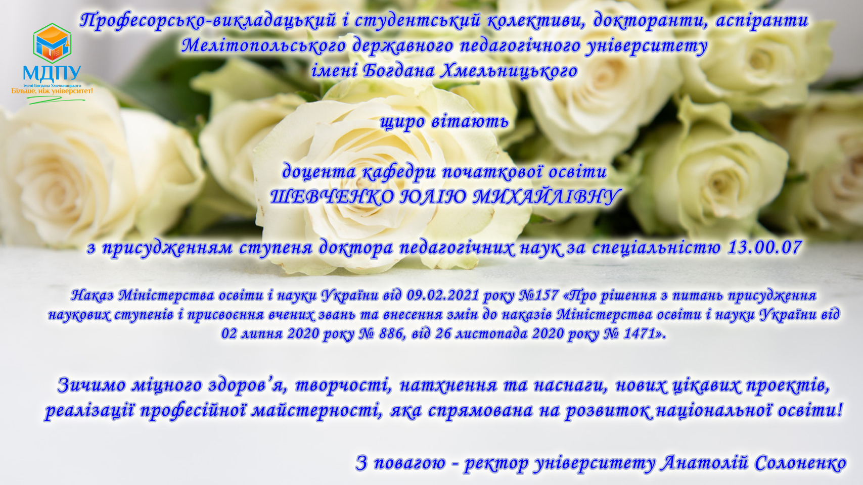 Лют132021Новини університету Post Views: 66 Category: Новини університетуВід mdpu_supervisor13.02.2021Leave a comment Author: mdpu_supervisor Post navigationПопереднійПопередній пост:Щиро вітаємо колег!NextNext post:Науковий семінар «Екологія наземних молюсків» PhD студентів освітніх програм «Екологія» та «Біологія» Мелітопольського державного педагогічного університету імені Богдана Хмельницького та Дніпровського національного університету імені Олеся ГончараRelated PostsМІЖНАРОДНИЙ ДЕНЬ ЗАПОБІГАННЯ ЕКСПЛУАТАЦІЇ НАВКОЛИШНЬОГО СЕРЕДОВИЩА ПІД ЧАС ВОЄННИХ І ЗБРОЙНИХ КОНФЛІКТІВ06.11.2025УСПІШНИЙ СТАРТ В АСПІРАНТУРІ: РЕКОМЕНДАЦІЇ ЩОДО СКЛАДАННЯ ІНДИВІДУАЛЬНОГО ПЛАНУ06.11.2025МРІЙ. ДІЙ. ПЕРЕМАГАЙ РАЗОМ З МДПУ!06.11.2025ЗАПРОШУЄМО ВЗЯТИ УЧАСТЬ У РОБОТІ КОНФЕРЕНЦІЇ!06.11.2025ВОРКШОП “ІДЕЇ ДЛЯ УРОКІВ МАЙБУТНЬОГО” — ОСВІТНІЙ ПРОСТІР ІННОВАЦІЙ ТА ПРОФЕСІЙНОГО ЗРОСТАННЯ!05.11.2025ВІТАЄМО З ПЕРЕМОГОЮ!05.11.2025