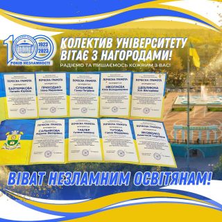Колектив Університету пишається Вами та щиро бажає й надалі примножувати здобутки на освітньо-науковому фронті, бути креативними, прогресивними та цілеспрямованими освітянами!