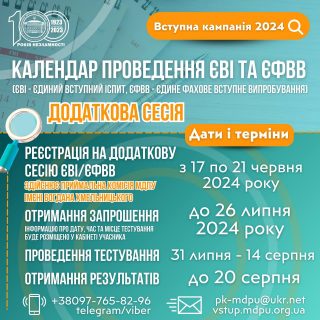 ‼️📝До уваги вступників 2024 року! 17 червня, з 9:00 до 18:00 21 червня 2024 року Приймальна комісія МДПУ імені Богдана Хмельницького приймає заяви та документи від абітурієнтів для реєстрації вступників для проходження єдиного вступного іспиту та єдиного фахового вступного випробування у ДОДАТКОВУ СЕСІЮ!