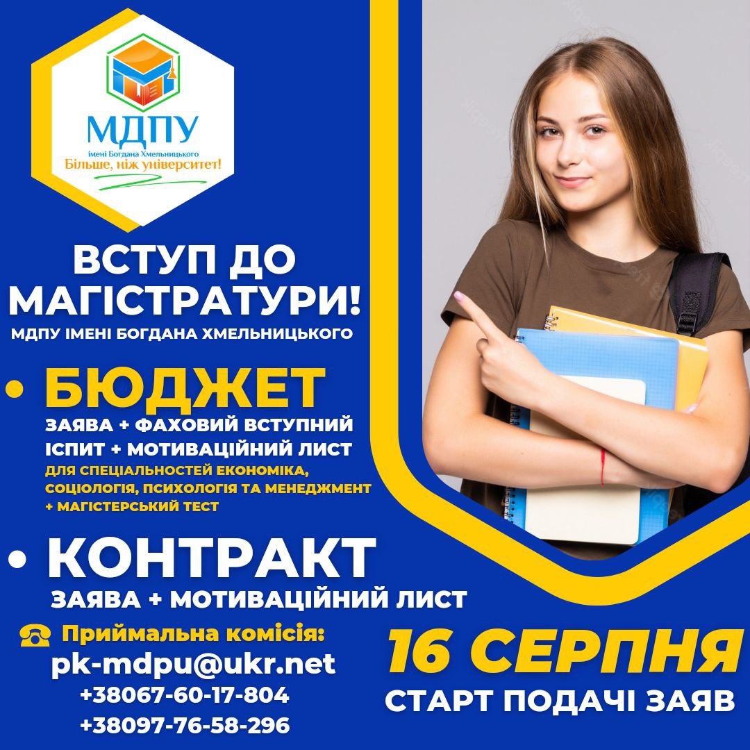 МДПУ імені Богдана Хмельницького запрошує отримати вищу освіту європейського рівня за освітнім ступенем “МАГІСТР”.