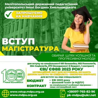 Мелітопольський державний педагогічний університет імені Богдана Хмельницького запрошує найкращу молодь України отримати вищу освіту за педагогічними та класичними напрямами за освітнім ступенем “Магістр”!