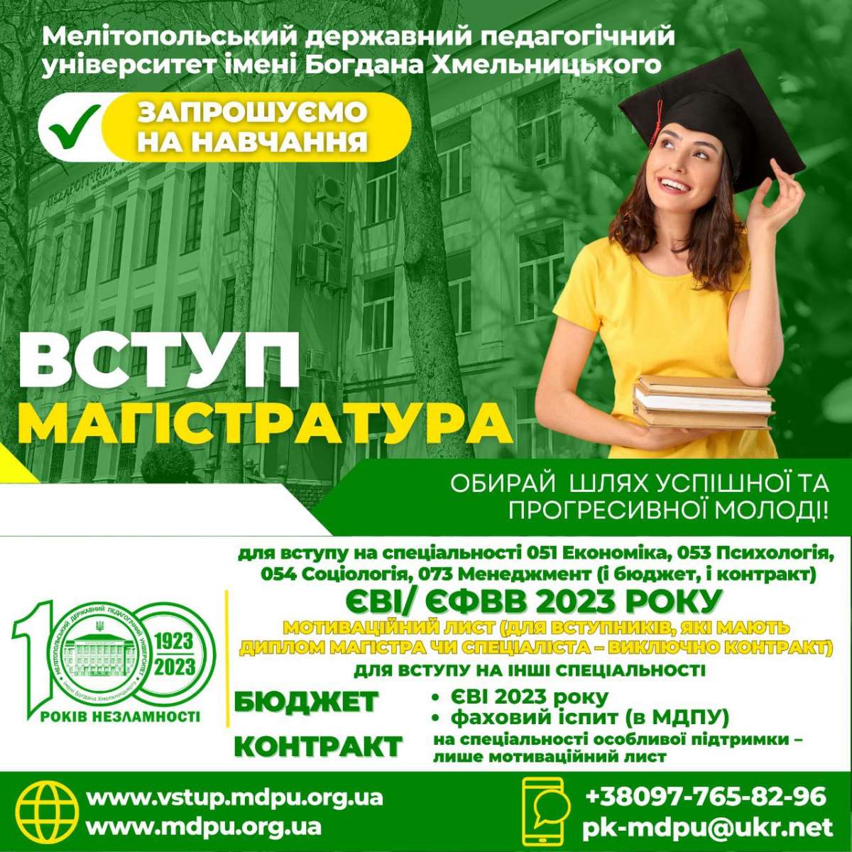 Мелітопольський державний педагогічний університет імені Богдана Хмельницького запрошує найкращу молодь України отримати вищу освіту за педагогічними та класичними напрямами за освітнім ступенем “Магістр”!