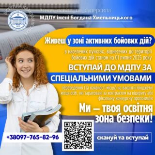 ВСТУПАЙ ДО МДПУ ЗА СПЕЦІАЛЬНИМИ УМОВАМИ, ЯКЩО ТИ З ТЕРИТОРІЙ БОЙОВИХ ДІЙ!