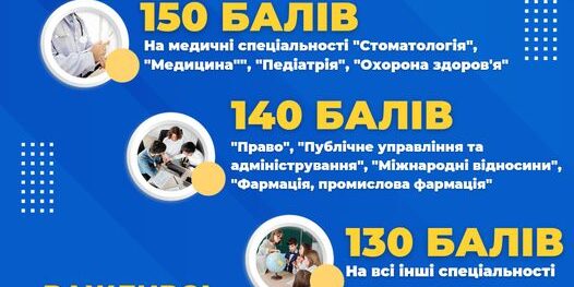 – Не менше, ніж 150 балів повинен бути конкурсний бал для спеціальностей:
