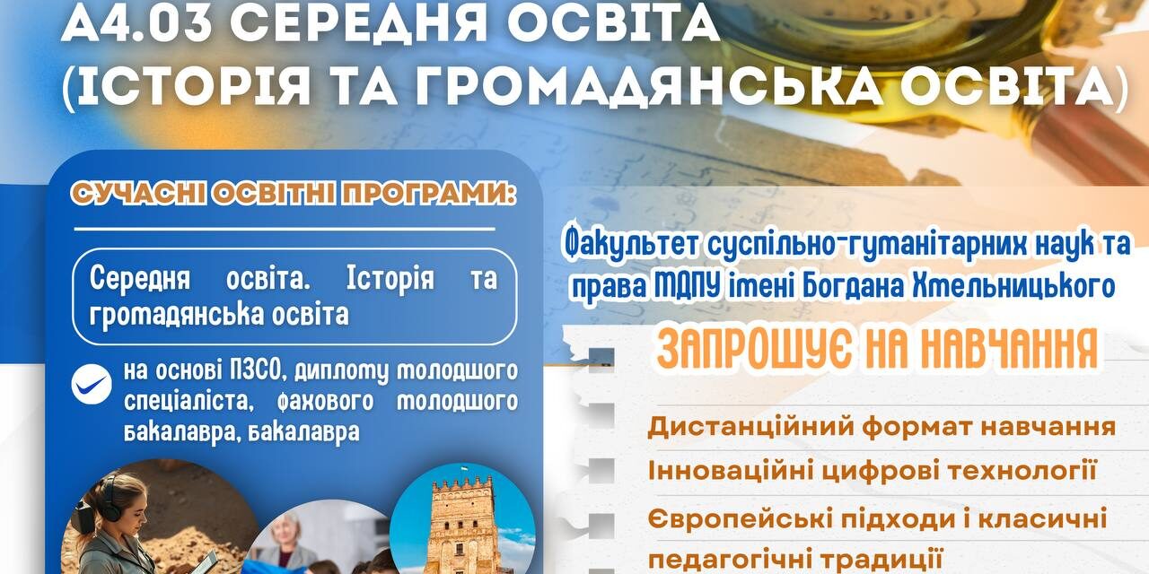 🏛️💫 Факультет суспільно-гуманітарних наук та права МДПУ імені Богдана Хмельницького запрошує здобути якісну вищу освіту за УНІКАЛЬНИМИ ОСВІТНІМИ ПРОГРАМАМИ!