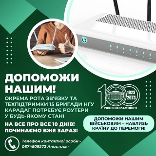 Окрема рота зв’язку та техпідтримки 15 бригади НГУ Карадаг потребує роутери у будь-якому стані.