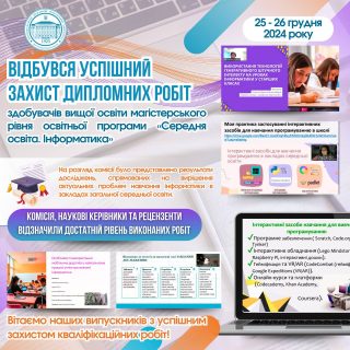 🏛️🙋🏻♂️25 та 26 грудня 2024 року на кафедрі інформатики і кібернетики відбувся захист дипломних робіт здобувачів вищої освіти магістерського рівня освітньої програми «Середня освіта. Інформатика».
