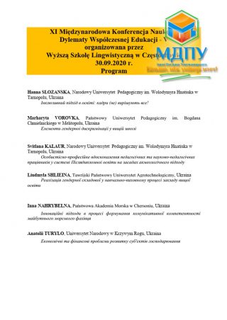 ХІ Міжнародна наукова конференція «Дилеми сучасної освіти», Вища Школа Лінгвістична, м.Ченстохова, Польща.