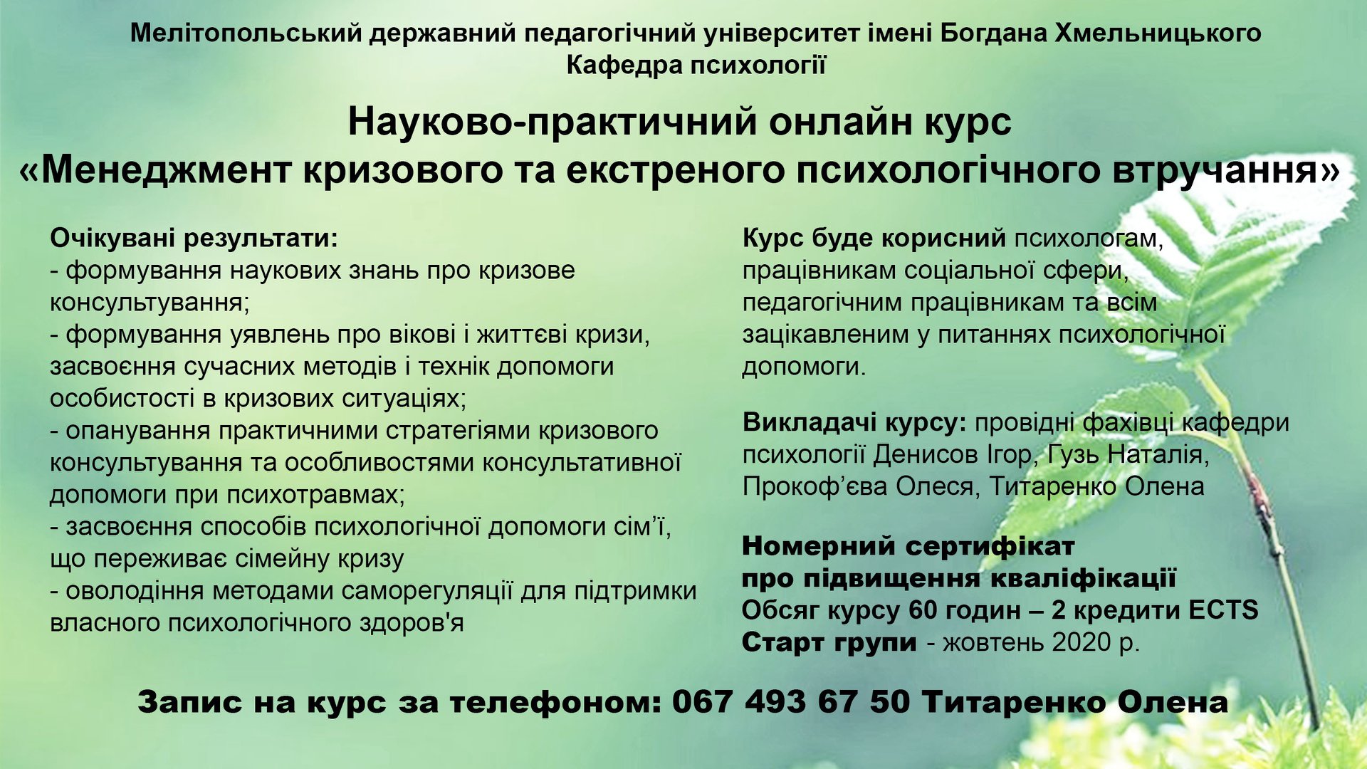 Шановні колеги, друзі! Запрошуємо Вас долучитися до професійного онлайн-курсу!