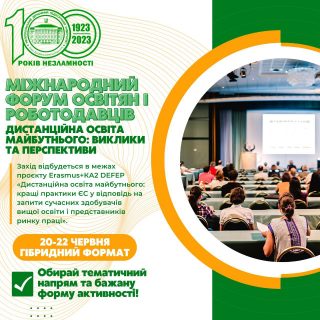 Запрошуємо долучитися до роботи Міжнародного форуму освітян і роботодавців «Дистанційна освіта майбутнього: виклики та перспективи», який відбудеться в межах проєкту Erasmus+КА2 DEFEP «Дистанційна освіта майбутнього: кращі практики ЄС у відповідь на запити сучасних здобувачів вищої освіти і представників ринку праці».