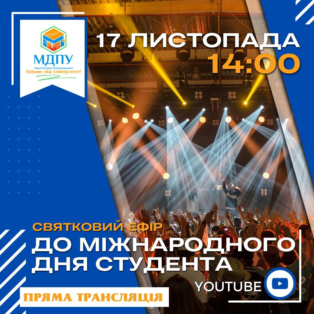 Запрошуємо величезну студентську спільноту Мелітопольського державного педагогічного університету імені Богдана Хмельницького долучитися до святкового ефіру з нагоди МІЖНАРОДНОГО ДНЯ СТУДЕНТА!