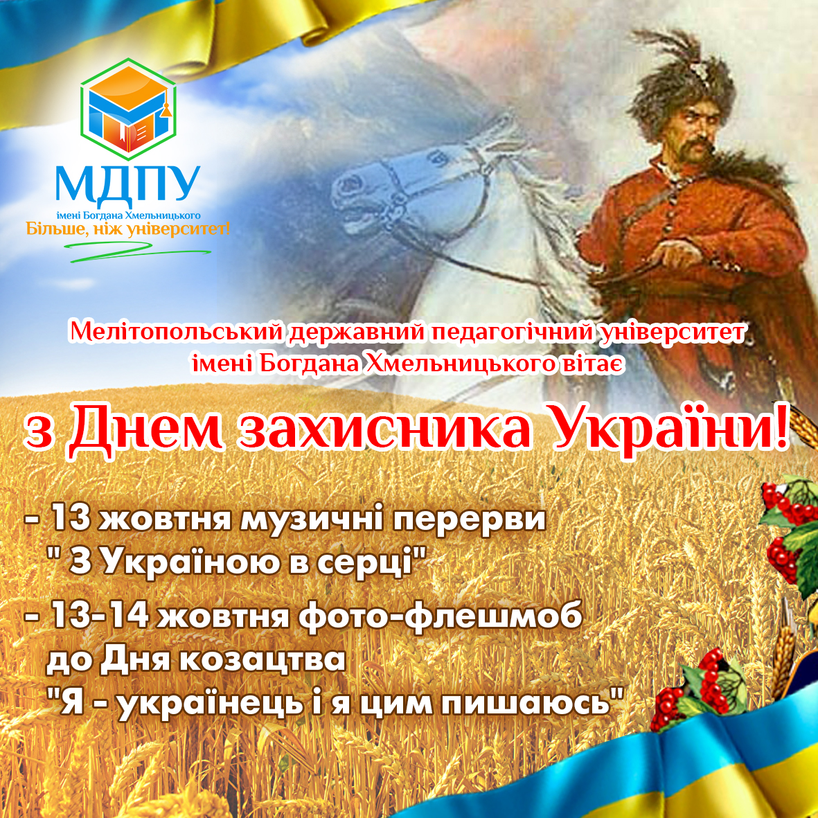 Відділ організаційно-виховної роботи та професійної орієнтації молоді вітає з прийдешнім державним святом – Днем захисника України!