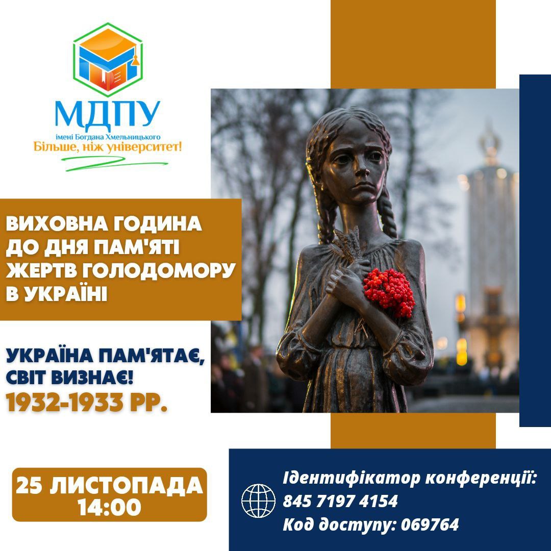 Родина МДПУ імені Богдана Хмельницького долучається до загальнонаціональних пам’ятних заходів і запрошує долучитися усіх здобувачів до виховної години “Україна пам’ятає, світ – визнає!”