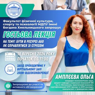 Кафедра психології Мелітопольського державного педагогічного університету імені Богдана Хмельницького запрошує стати учасниками гостьової лекції на тему: