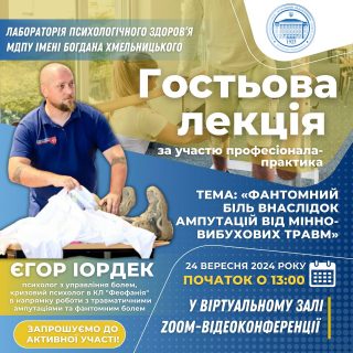 🇺🇦‼️Лабораторія психологічного здоровʼя Мелітопольського державного педагогічного університету імені Богдана Хмельницького запрошує стати учасниками гостьової лекції на тему: «Фантомний біль в наслідок ампутацій від мінно-вибухових травм».