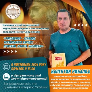 👨🏻🎓📚Лектор: Валентин Рибалка – начальник експозиційно-виставкового та видавничого відділу комунального закладу «Музей спротиву Голодомору» Дніпровської міської ради.