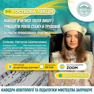 🏛️🎓 Кафедра освітології та педагогіки мистецтва МДПУ імені Богдана Хмельницького запрошує стати учасниками цікавої гостьової лекції:
