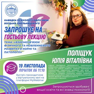 📝🫂Кафедра психології Мелітопольського державного педагогічного університету імені Богдана Хмельницького запрошує на гостьову лекцію «Взаємозв’язок фізичного та мовленнєвого розвитку в нормі та патології»!