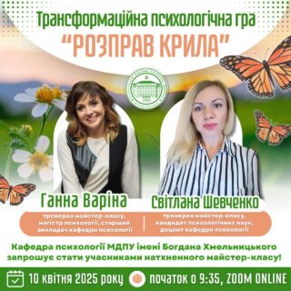 🏛⭐️Кафедра психології МДПУ імені Богдана Хмельницького запрошує на майстер-клас: «Трансформаційна психологічна гра Розправ крила»
