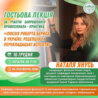 👩🏼💼🇺🇦Лектор: Наталя Володимирівна Янусь – кандидат філологічних наук, доцент кафедри іноземних мов і методик їх навчання.