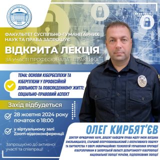🇺🇦⚖️ Факультет суспільно-гуманітарних наук та права запрошує стати учасником відкритої лекції на тему: 👩🏼💻🔐«Основи кібербезпеки та кібергігієни у професійній діяльності та повсякденному житті: соціально-правовий аспект».