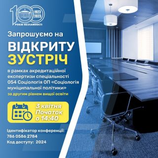 Запрошуємо всіх бажаючих долучитися до відкритої зустрічі в рамках акредитаційної експертизи 3 квітня 2024 року о 14:40