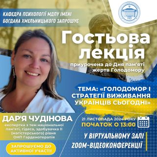 📝🫂Кафедра психології Мелітопольського державного педагогічного університету імені Богдана Хмельницького запрошує на гостьову лекцію, приурочену до Дня пам’яті жертв Голодомору «Голодомор і стратегії виживання українців сьогодні»!