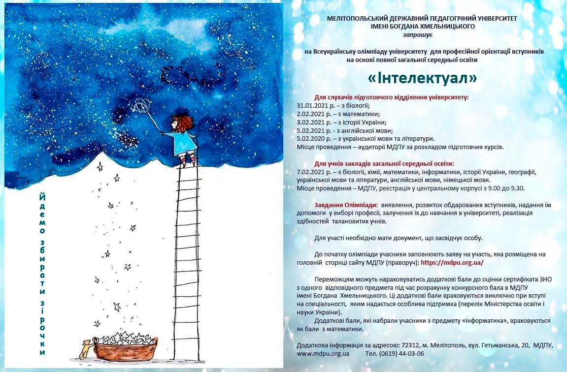 Заява на участь у Всеукраїнській олімпіаді МДПУ імені Богдана Хмельницького для професійної орієнтації вступників “Інтелектуал” на основі повної загальної середньої освіти