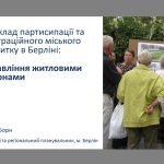 Тема обговорення: Управління житловими районами міста. Досвід Лукаса Борна (міський та регіональний планувальник, м. Берлін)
