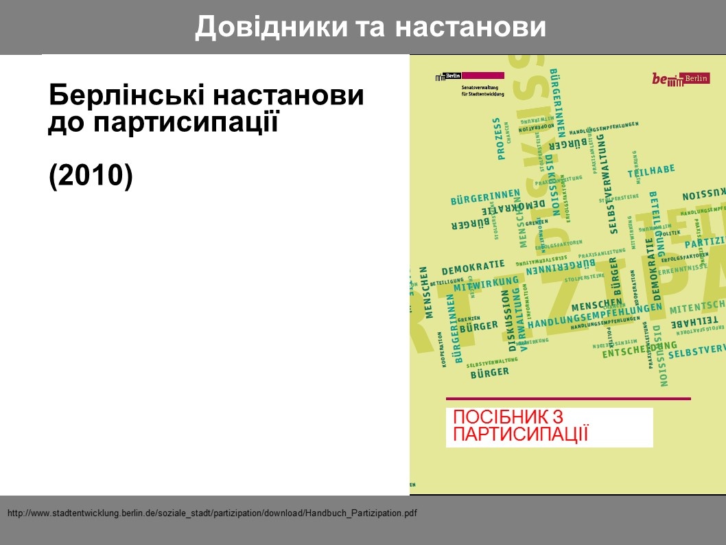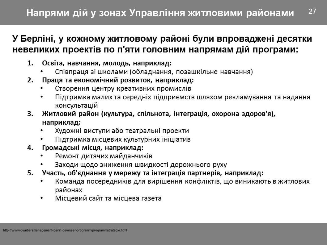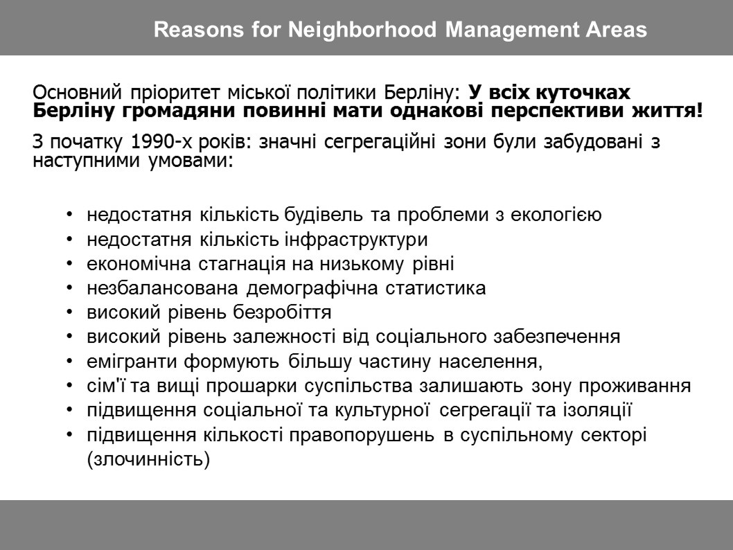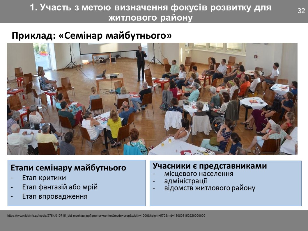 До початку засідання, ознайомтесь в прикріпленому файлі з презентаційним матеріалом «Приклад партисипації та інтеграційного міського розвитку. Управління житловими районами міста», Вам це допоможе більш творчо й креативно попрацювати в команді.
