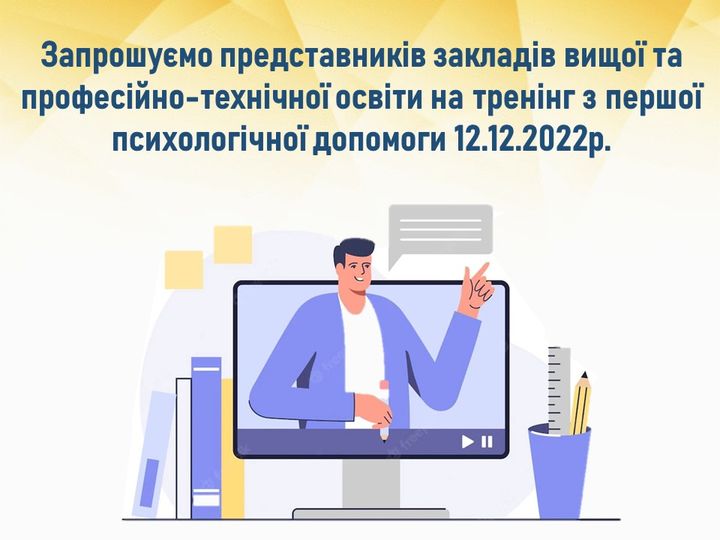 Запрошуємо представників закладів вищої та професійно-технічної освіти на тренінг з першої психологічної допомоги