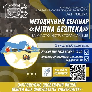 Кафедра психології та кафедра біології людини та екології Мелітопольського державного педагогічного університету імені Богдана Хмельницького запрошують стати учасниками методичного семінару «Мінна безпека» за участю інструктора-фахівця!