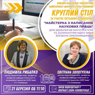 Кафедри педагогіки і педагогічної майстерності Мелітопольського державного педагогічного університету імені Богдана Хмельницького запрошує долучитися до роботи круглого столу для аспірантів та магістрів на тему: