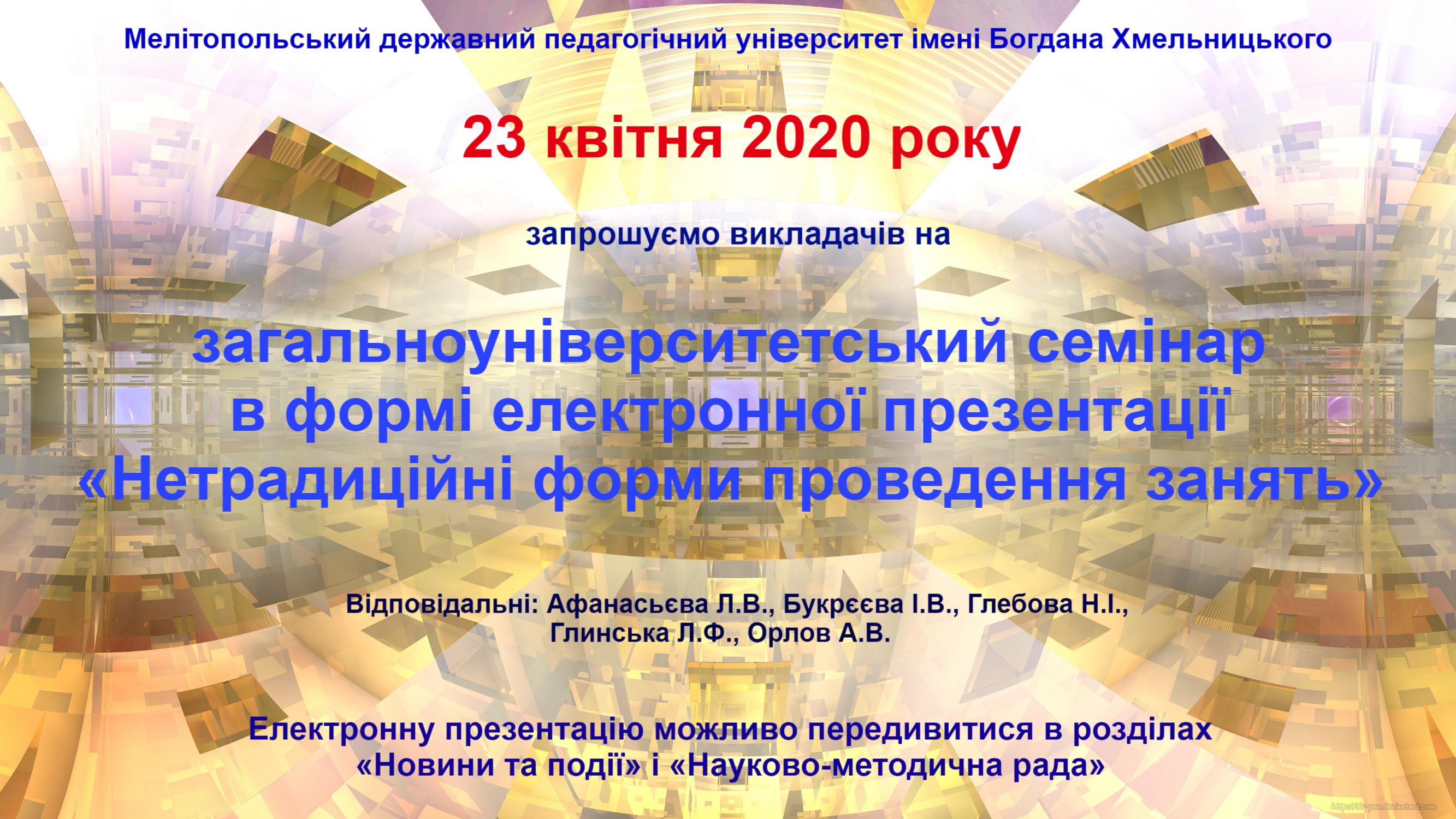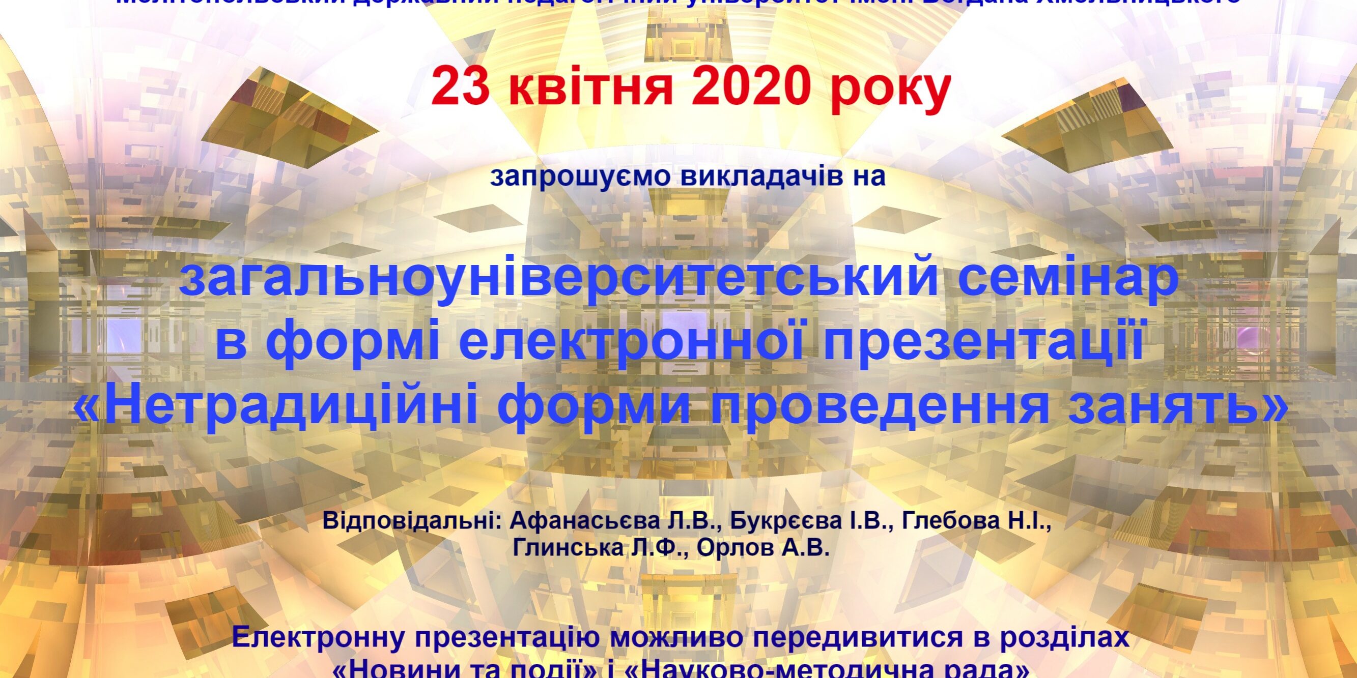 Кві222020Новини університету Post Views: 38 Category: Новини університетуВід mdpu_supervisor22.04.2020Leave a comment Author: mdpu_supervisor Post navigationПопереднійПопередній пост:“Ветерани космічних військ” і студентство привітали А.Солоненка з днем народженняNextNext post:Пропонуємо майстер-клас з української мови для успішного складання зовнішнього незалежного оцінюванняRelated PostsМІЖНАРОДНИЙ ДЕНЬ ЗАПОБІГАННЯ ЕКСПЛУАТАЦІЇ НАВКОЛИШНЬОГО СЕРЕДОВИЩА ПІД ЧАС ВОЄННИХ І ЗБРОЙНИХ КОНФЛІКТІВ06.11.2025УСПІШНИЙ СТАРТ В АСПІРАНТУРІ: РЕКОМЕНДАЦІЇ ЩОДО СКЛАДАННЯ ІНДИВІДУАЛЬНОГО ПЛАНУ06.11.2025МРІЙ. ДІЙ. ПЕРЕМАГАЙ РАЗОМ З МДПУ!06.11.2025ЗАПРОШУЄМО ВЗЯТИ УЧАСТЬ У РОБОТІ КОНФЕРЕНЦІЇ!06.11.2025ВОРКШОП “ІДЕЇ ДЛЯ УРОКІВ МАЙБУТНЬОГО” — ОСВІТНІЙ ПРОСТІР ІННОВАЦІЙ ТА ПРОФЕСІЙНОГО ЗРОСТАННЯ!05.11.2025ВІТАЄМО З ПЕРЕМОГОЮ!05.11.2025