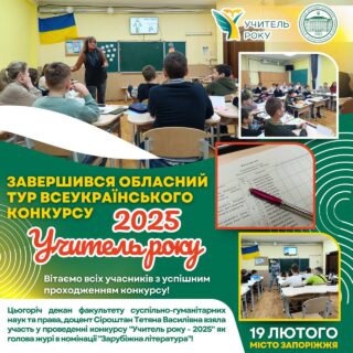 🏛️💫 19 лютого 2025 року п’ятеро фіналістів провели відкриті уроки із зарубіжної літератури в 5 – 7 класах на базі Запорізької спеціалізованої школи з поглибленим вивченням іноземної мови №7.