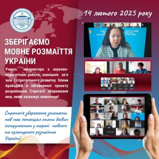 👩🏼🎓💫14 лютого 2025 року проректор з науково-педагогічної роботи, зовнішніх зв’язків і стратегічного розвитку Олена Арабаджи взяла участь у обговоренні проєкту розроблення Стратегії збереження мов, яким загрожує зникнення.