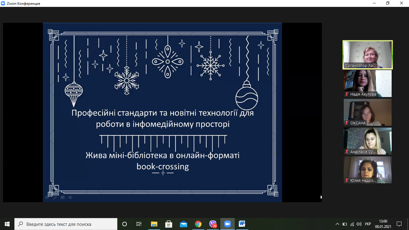 Навіть у святкові дні не припиняється робота Хабу інфомедійно-грамотних громадян МДПУ імені Богдана Хмельницького. Так, 8 січня 2021 р. було організовано Живу бібліотеку та book-crossing у межах теми «Професійні стандарти та новітні технології для роботи в інфомедійному просторі». Захід відбувся в рамках грантової діяльності (слайд) проєкту “Вивчай та розрізняй: інфо-медійна грамотність”, який виконується Радою міжнародних наукових досліджень та обмінів (IREX) за підтримки Посольств США та Великої Британії, у партнерстві з Міністерством освіти і науки України та Академією Української преси.